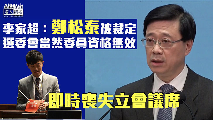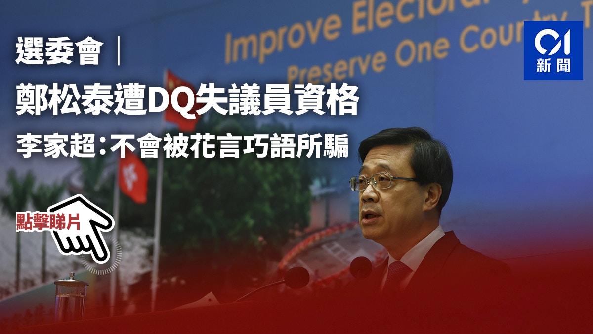 鄭松泰被資審會DQ 即時喪失立法會議員資格 今天下午政務司司長候選人資格審查委員會主席李家超就候選人資格審查委員會審查結果會見傳媒 資審會審查1498名人士後裁定兩名人士取消資格其中一名為現屆立法會議員鄭松泰李家超指一些嘗試假扮擁護基本法假扮效忠特區的人.